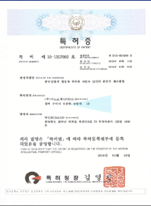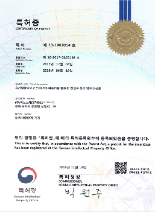 09 Acquired patent on [Preparation of Long Fiber Glass Batches Containing Cullet of Window Cover Glass]