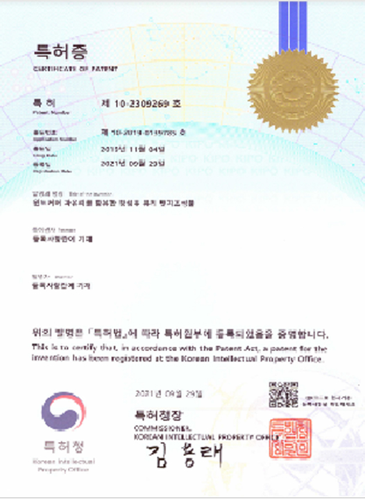 01 Acquired patent on [Manufacturing Method for High-Purity Silica Powder for Long Fiber]